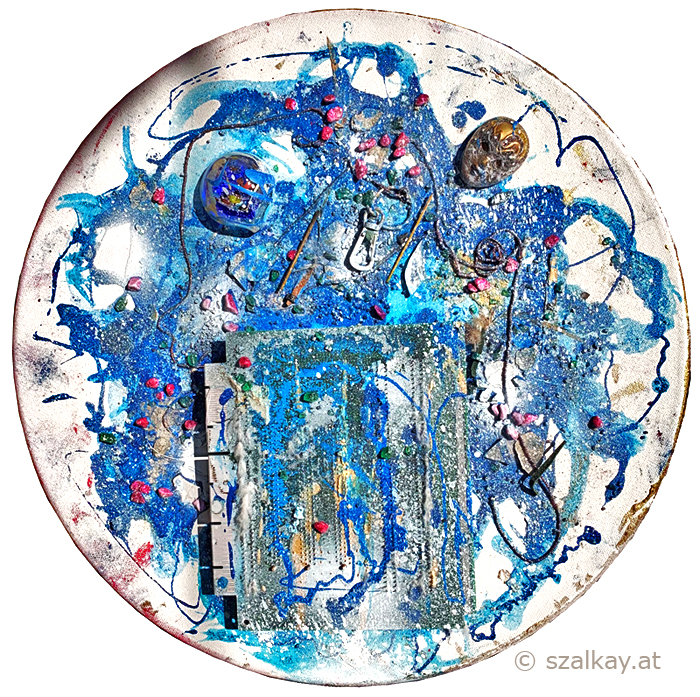 ixed media on canvas, diam. 40 cm