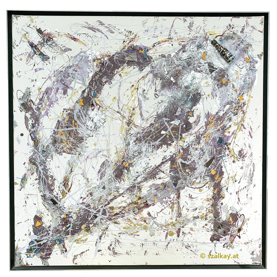 media on canvas. 90 x 90 cm (approx. 35" x 35")