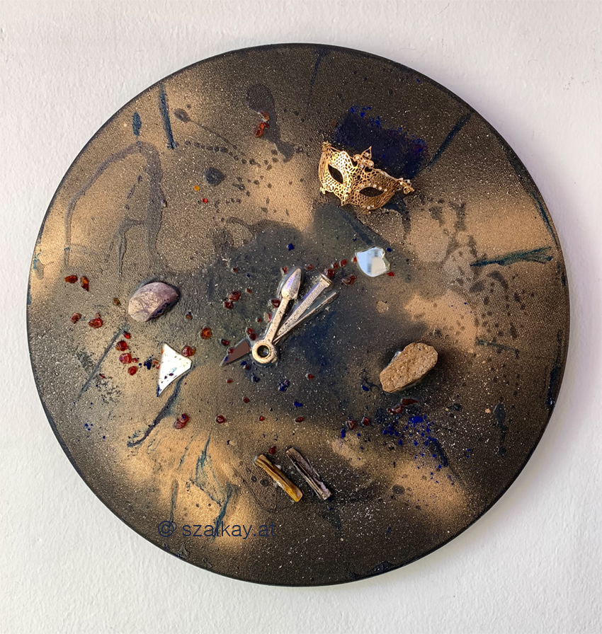 Acrylic / mixed media on canvas. Diameter 40 cm, depth 18 mm